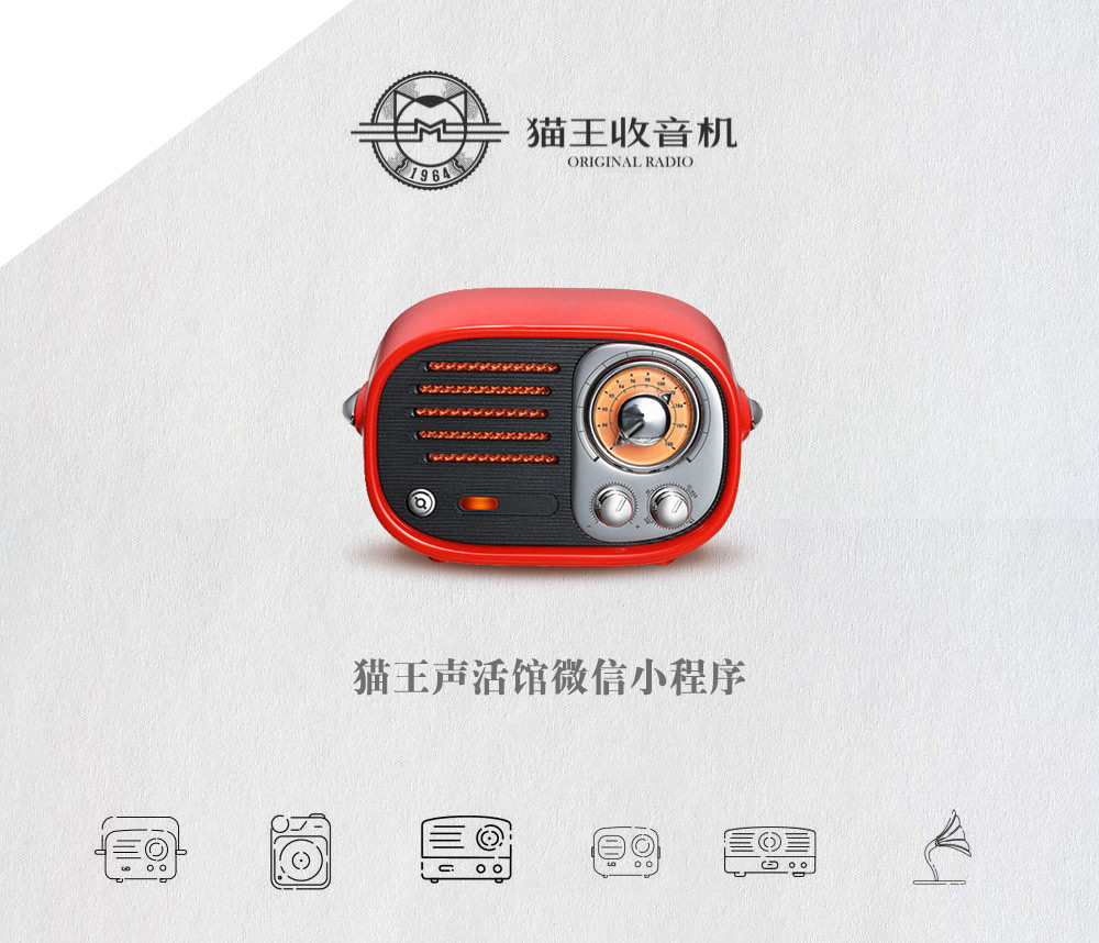 猫王收音机是极具情怀的收音机品牌,由中国著名音响设计师曾德钧先生所创立。曾德钧自小对收音机着迷,每个重要的人生拐点都与收音机有关,他热爱收音机及电台文化,深信这是人类史上的声音传奇,并希望有温度、有故事的声音能够继续传递。为此,曾德钧逆时代而上,重拾电台黄金时代的经典,创立“猫王收音机”。